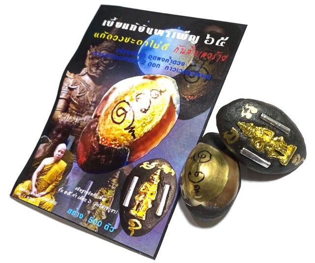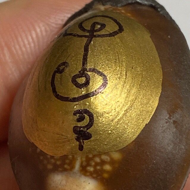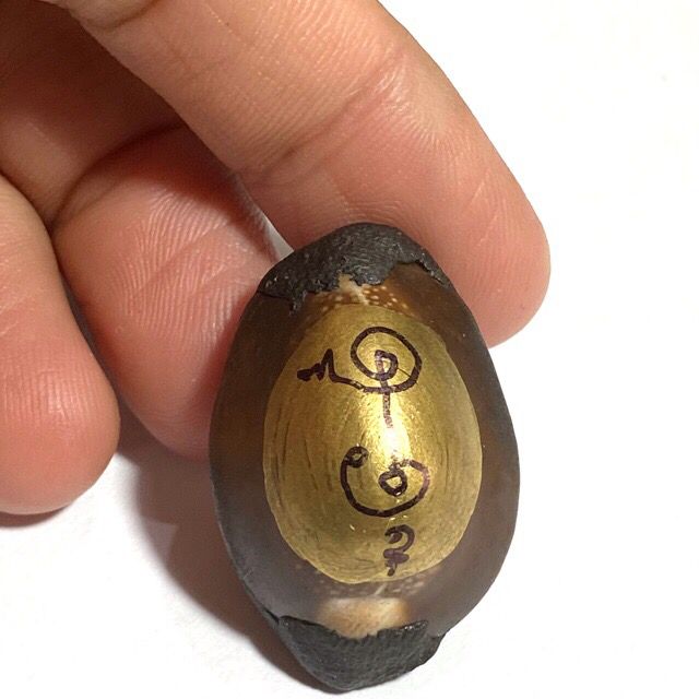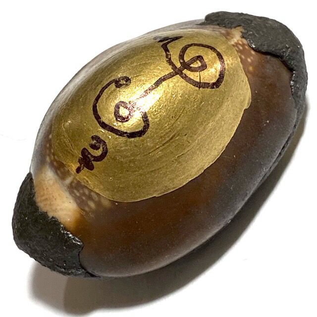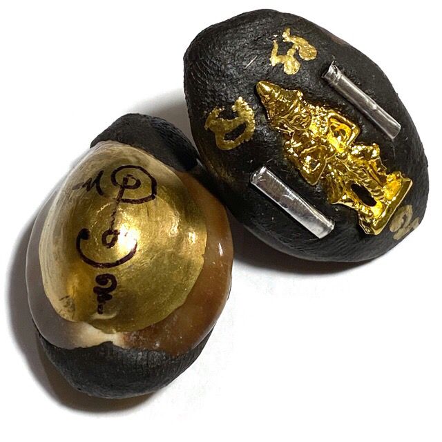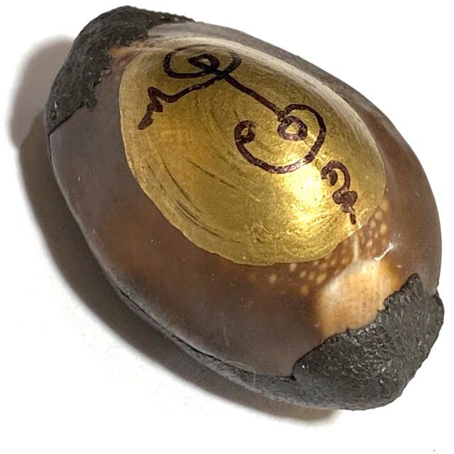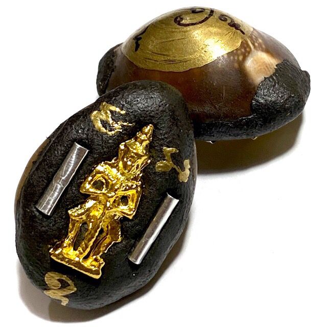 Bia Gae is a branch of ancient Thai Buddhist talismanic science, using cowrie shells as the main material. One famous lineage is the method from Wat Klang Bang Gaew, which includes covering the shell with metal sheets (“liem kiew Bia” technique). Afterward, disciples will fill the shell with mercury while chanting sacred incantations led by a master monk.