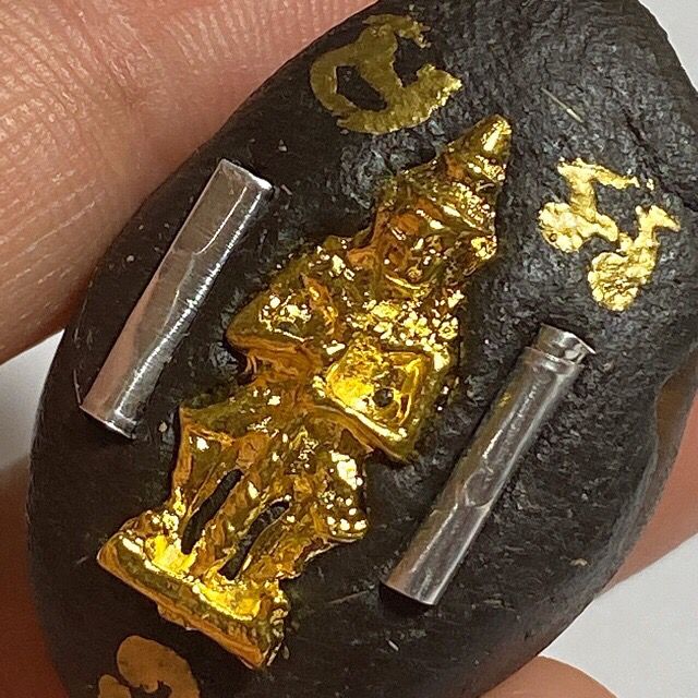 According to the creators, the highlight of this Jantr Pen edition is its ability to "reverse bad fortune and ward off evil." This means it helps transform misfortune into good luck and protects against inauspicious energies. Inside the shell, consecrated mercury and sacred powder for destiny enhancement are sealed, an ancient technique that boosts protective and evasive powers. Additionally, two silver “Na Setthi” Takrut are inserted to enhance wealth and prosperity for the wearer and a Loi Ongk Statuette of Tw Waes Suwann.