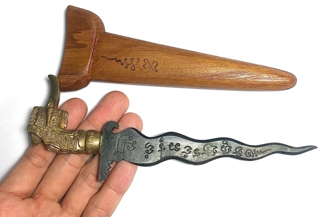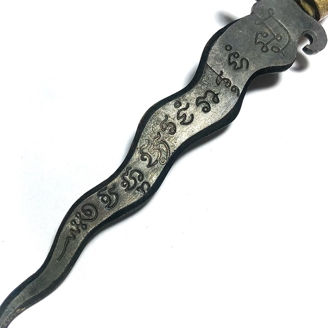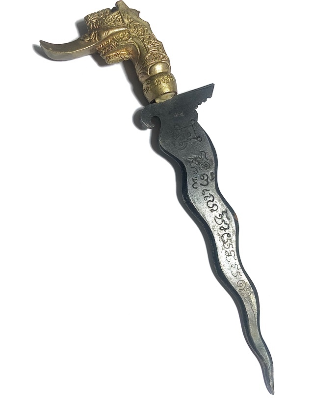 It is used as a Ceremonial Regalia, a Magical Ritual Instrument, and a status symbol. It is a personal defence, a magical protector and luck bringer and blessing giver. Empowered with the Invocation of the four Devas of Weaponry, the Spirit Knife is one of the four external Essential weapons of the Adept Mage. It can be used to empower or cast any kind of spell, for it is endowed with all the following magical properties; Amnaj (Dominion), Klaew Klaad (Evasion of Danger), Kong Grapan (Invincibility/Bulletproof), Choke Lap Pokasap (Luck, Wealth and Treasures), Kaa Khaay (Sell Well), Metta Mahaniyom (Popularity and Assistance, Friendship), Maha Sanaeh (Charm and Attraction).