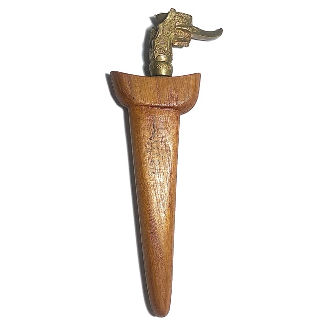 Luang Por Prohm has created the Grich Rit Waet Nor Mo Khao Or in the periodic Style of the Srivichai Empire. The Grich (a waved bladed dagger) is a very ancient weapon which is very rare to see in modern times. Many people believe this kind of weapon to have originated with the Islamic World, but this is argued in Thailand, to be a fallacy. It is allegedly recorded that, about 100 Years ago during the Srivichai Empire in what is now South Thailand, the Brahman (Hindu) Folk here believed that the Grich dagger was a very powerful Cosmic Weapon belonging to the Lord Shiva, who bestowed it upon the people of the World.