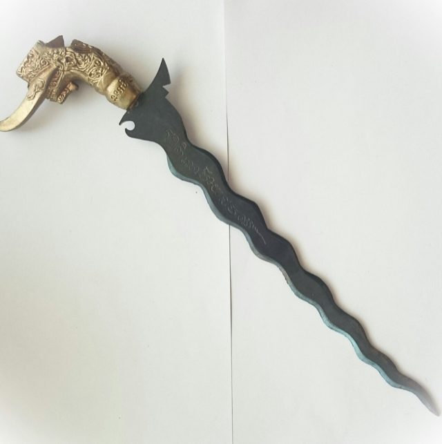 This caused the Royal Courtiers and Entourages to acquire these daggers, and wear them as Royal decorative Regalia in Public Appearance. The Grich, 'Kris' or 'Thai Keris', is a magical Ceremonial/Ritual weapon which is used by Buddhist, Hindu and Muslims.