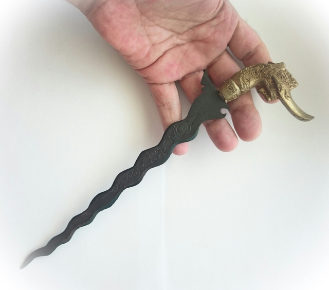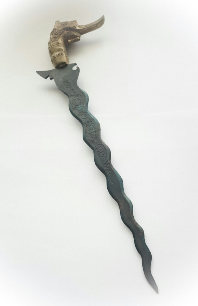 Special Large Dagger of the Gammagarn Collector edition flamed Magic Spirit Knife (Ritual Dagger), for protecting and removal of Black Magic, and for endowing various blessings and magic spells. The Hongsa Head HIlt is the typical design fo a Thai Keris/Kris knife.