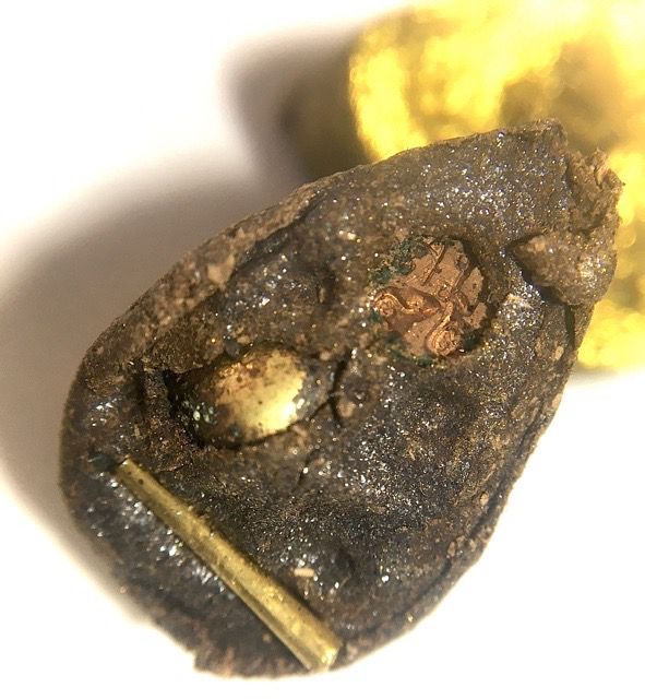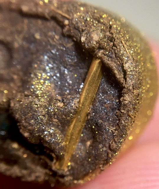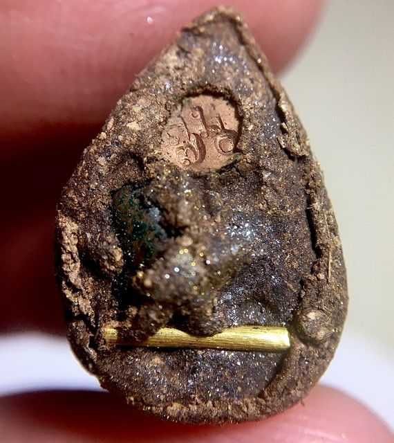 Below; Sacred elements inserted into the rear face of the amulet, made from rich Lek Nam Pi and Rae Serm Palang Gaay Sacred Muan Sarn powders