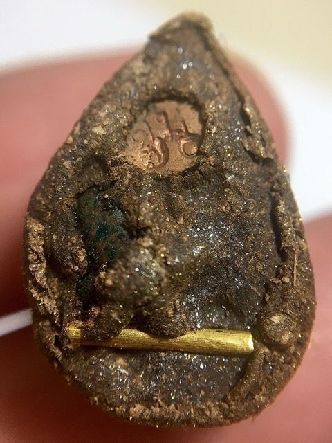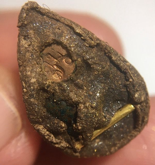 Luang Phu Simplee is the living Master of this Lineage, with direct Initiation through the hand of Luang Phu Mun. The Forest Tradition of Tudong was in fact actually not even really a dogma, for it is better denominated as an applied method of practice, more than a method of philosophy, or philosophizing. This is perhaps one of the only last remaining Masters living memory whose direct lineage transmission from this era of masters, who are the most famous in the History of Thai Buddhism, Thai Amulets, and Buddha Magic.Below: Lek Lai Ngern Yuang inserted into the Pong Rae Lek Nam Pi and Rae Serm Palang Gaay powder base of the rear face of the amulet