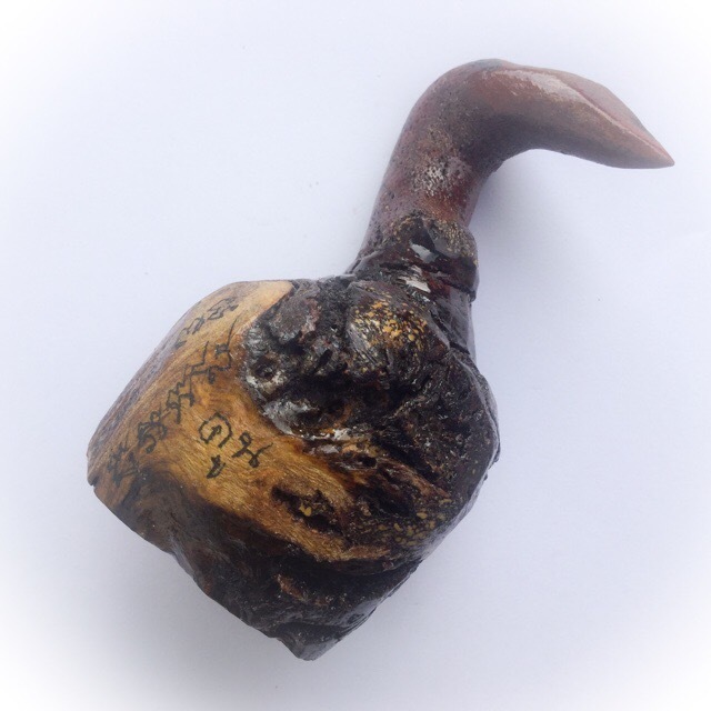 In Thailand, Ga Fak Rak tree is a very rare and powerful Maha Sanaeh Metta Mahaniyom Magical Wood, which is popular with Market Stall Holders, and Shop Owners, who hang the wood in their place of Business, to attract and increase customers and sales. The wood is carved into various kinds of Merciful Himapant Animals, such as this Ga Fak Crow, or the Palad Khik Phallic Lingam.