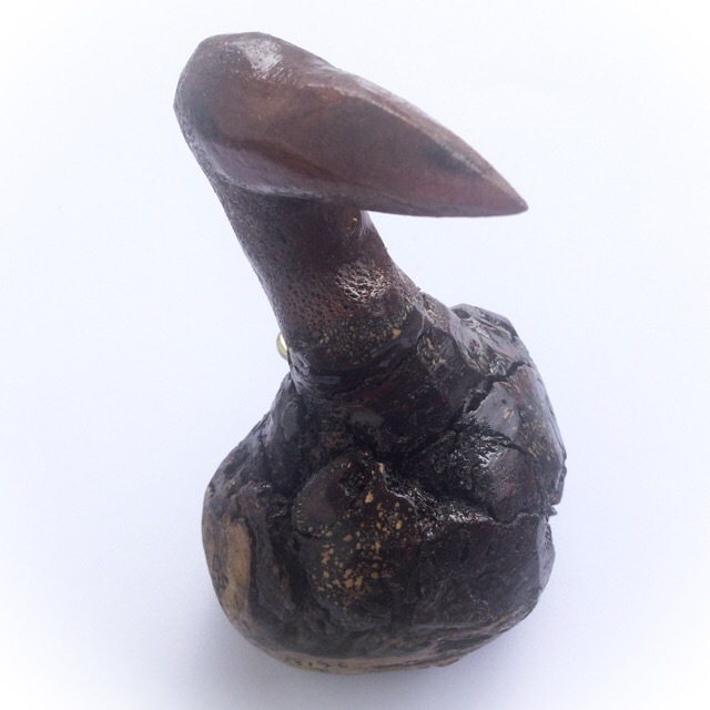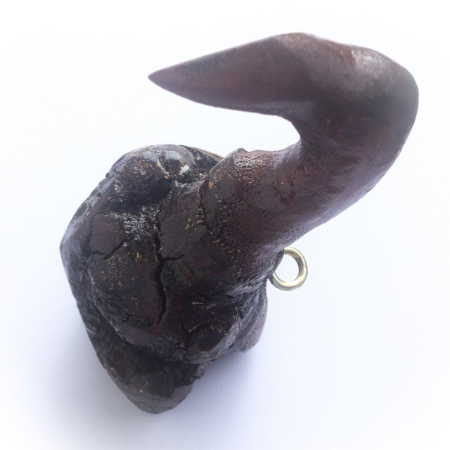 The Ga Fak Rak Crow is formed from the natural shape and form of the Sacred Ga Fak Rak wood, which has required only the minimum of caring to enhance the already crow head shaped piece of Sacred wood. Empowered with the Wicha of Luang Por Prohm, Master of the temple of Luang Por Kong; Wat Ban Suan, in Pattalung.