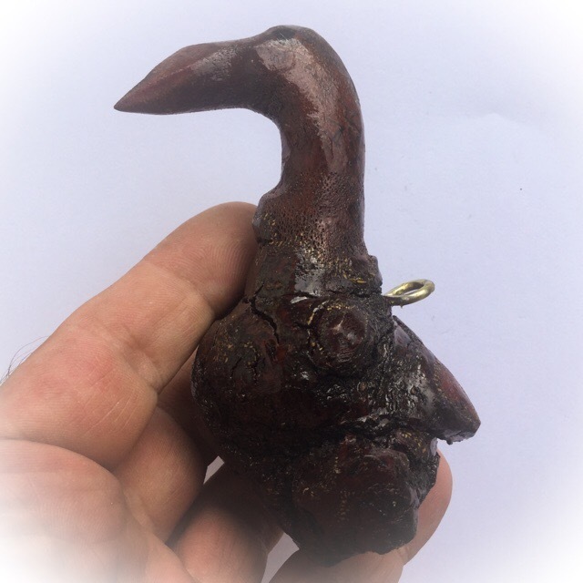 This amulet is useful as a seduction and wealth attraction charm, as well as for increasing popularity, and the power to convince others to give in to your requests, The crows head is raised up emerging from the Mother-Node, where the Ga Fak Parasitic Plant was attached to the Mayom Tree into one symbiosis.