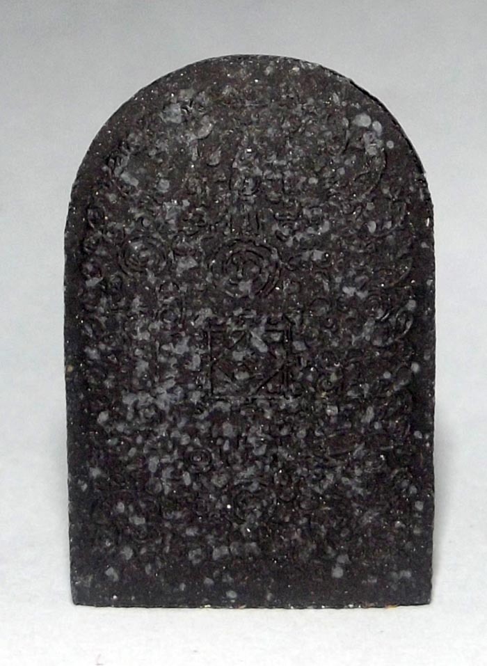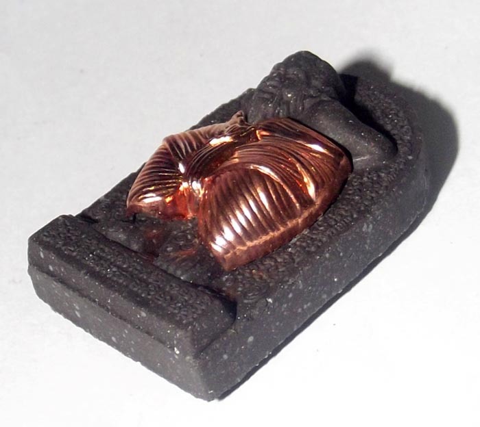 The Dta Ba Khaw amulets were made in a number of different Sacred powders and Sacred Metals, including mixed media of Powder amulets with sacred Metal trousers attached to the powder base. This particular model is in 'Nuea Maha Wan Dam Gang Geng Tong Daeng' (Black Powders with Copper Trousers) which in addition to the simply powder versions, were made with brass, solid silver and solid gold trouser versions in both black and white powder versions.