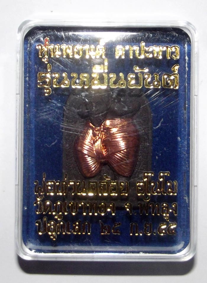 These amulets were blessed aned empowered in an extremely powerful, sacred and famous Puttapisek ceremony which hit major newspapers and even international publications. In addition to the Hun payont, some Sacred Metal yantra Coins with the ten thousand Incantation Yant were also released.