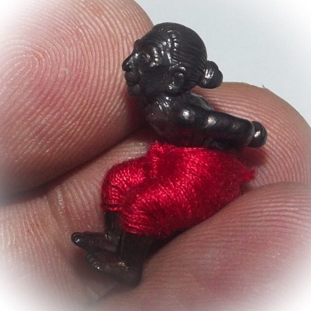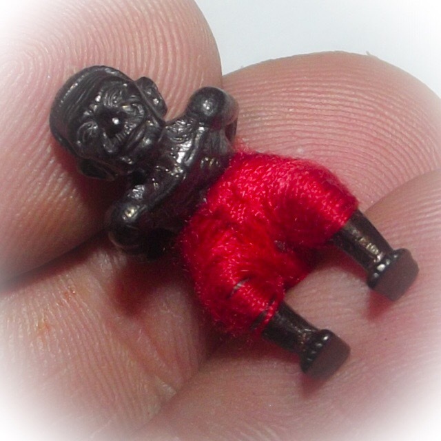 The 'Hua Jai Dta Ba Khaw spell was invoked to instill the heart of the Dta Ba Khaw entity within the effigy using colored daay mongkol cords in the clockwise direction to wind the heart inside the chest to the left side. The Hun Payont is given trousers that have seven strips around the waist, meaning 'Sang Wi Taa Bu Ga Ya Ba' (7 Syllable Kata of the Abhidhamma).