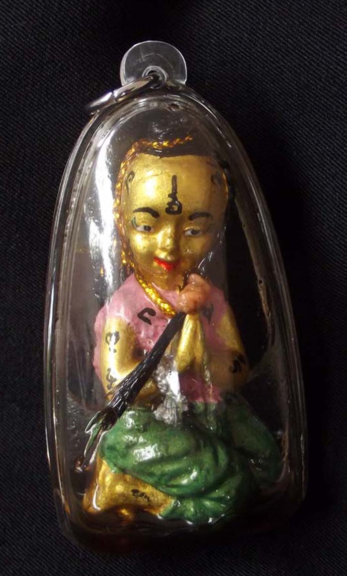 This 2555 BE edition of Special Comission Kumaree Hnoo Uean female Kumarn Tong were awaited with such Great Expectancy that they were all sold out immediately after release, with only pre-orders being accepted - however many were ordered is how many were made. Luckily, we were amongst those who were allowed on the list to apply for some.The Kumaree were made according to an Ancient Wicha found in the pages of an extremely old Parchment Grimoire of Isan Sorcery which explains how to make a Female Kumarn (Kumaree) Tong and invoke the Spirit of a Deva within it. The Wicha calls upon the Deva Kumaree to protect you who care for the welfare of the Kumaree from Dangers and Evil, Black Magic and Inauspicious Events, and to Cultivate Prosperity and Increase Material Wealth.