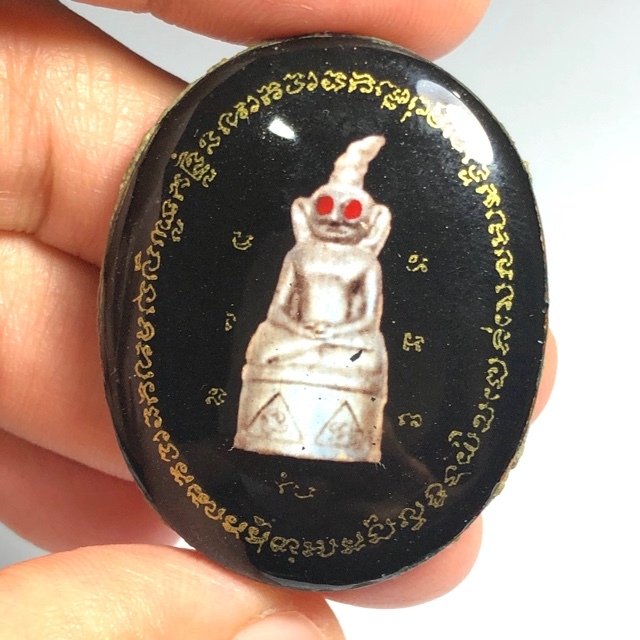 Pra Ngang Maha Sanaeh Locket for attracting oposite sex, gambling, and good business. Kong Grapan Klaew Klaad protection is a secondary effect of the Ngang Dta Daeng Stuffed with sacred and powerful Prai Powders for which Ajarn perm has become famous for, and spells between the two sea shell locket covers. The Locket has been painted with Magical Black and Gold Magical Inscriptions, with the subtle and spiritual looking image of the Pra Ngang Dta Daeng Deva. A true hit with gamblers and those of the amorous inclinations, as well as sales persons and store owners, can use the Ngang for your goals. Pra Ngang is also a very powerful protector against Black Magic, having plenty of it in its own Power.