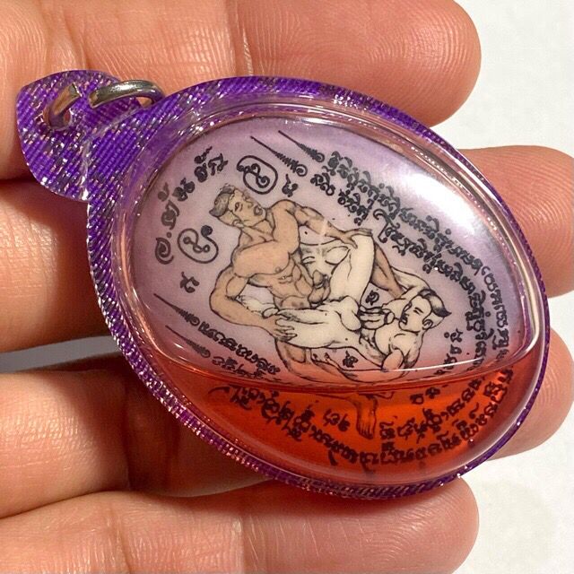 The Locket In-Koo Sakod-Kam for same-sex love by Master Tonrak Salakyan. This item is considered a "rare item" that many in our community should possess, especially the "purple version," which is particularly special and beautiful.