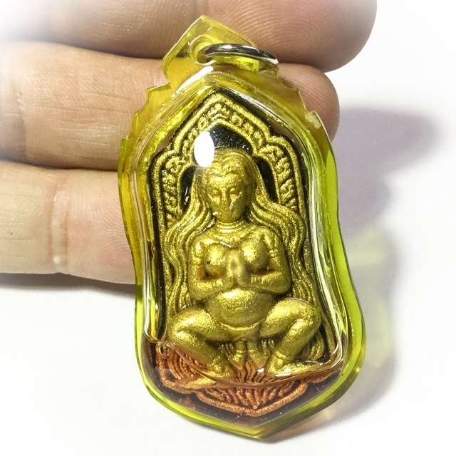 This amulet is directly intended for Devotees who need help to improve Business, and those who love to play Lottery, Gamble, and make speculative investments. The Mae Gamnerd is an extremely powerful Deity for Commerce, Improved Social and Love Life. Auspicious Causes for successful business, Charm and Attraction power in all walks of Life. Mae Nang Pim is an effigy in the form of a woman sitting in the act of childbirth.