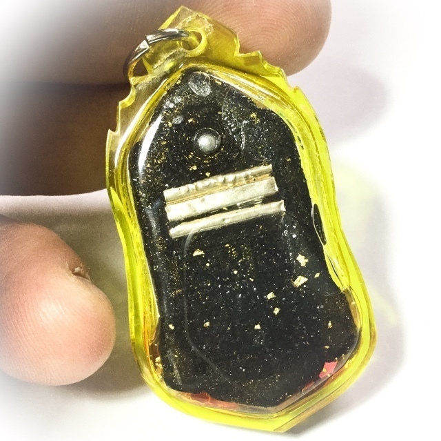 The amulet is sealed within waterproof casing, and immersed in Nam Man Prai Oil. Ajarn Hnan Kong was ordained monk, and is in the present day disrobed, and producing amulets which only the lay sorceror and necromancer can make. For indeed, certain forms of sorcery (i.e. High Necromancy, and Dark Arts amulets), impose strict rules on Monks, who are very limited as to how far they can go when practicing sorcery.