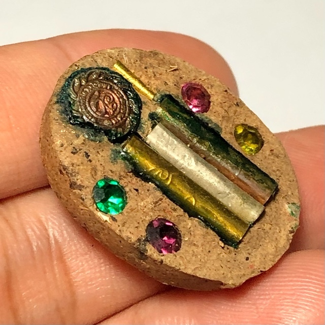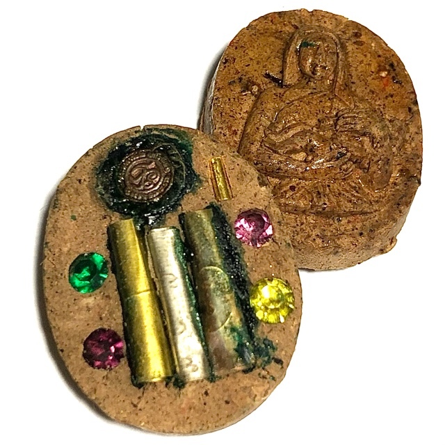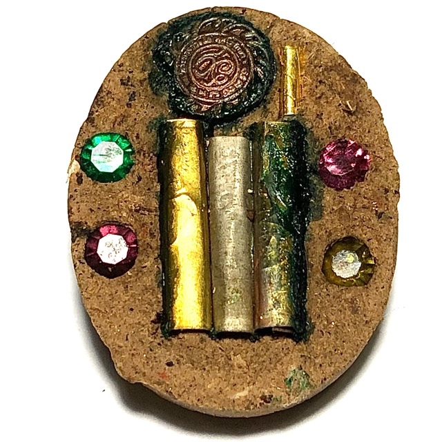 Indeed, no two amulets are exactly the same, due to the hand inscriptions and hand insertion of Muan Sarn and sacred items such as Takrut, Ploi Sek Gems and the like. Ajarn Oe's amulets are always highly varied but only made in very small numbers, and are highly prized by his devotees.