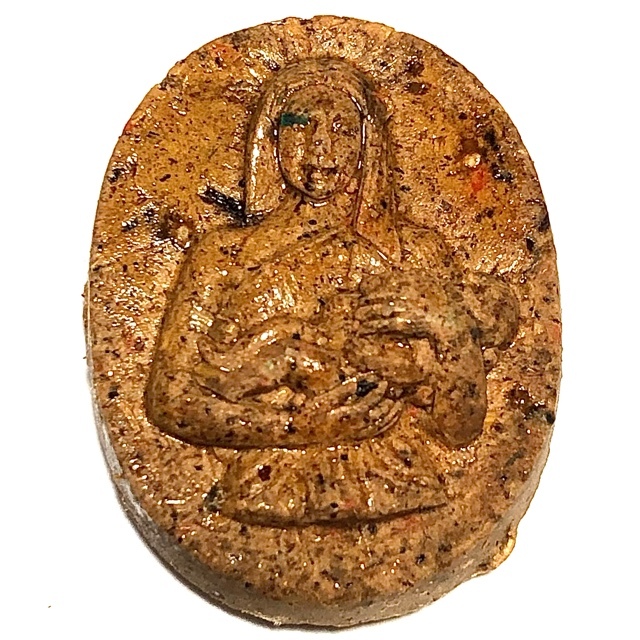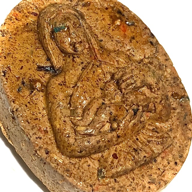 This amulet is one of various models released in different types and levels of concentration of Muan Sarn Powders, and released in Wai Kroo along with some Mae Hoeng Prai amulets and a range of other limited small edition amulets, which included a large number of different types of Wicha, but only a few amulets of each different type were made, making each and every amulet an original hand blessed amulet.