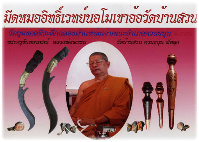 We have a vast selection of over 4000 different kinds of Sacred Amulets and Bucha Items, including Buddha Image, Loi Ongk statuettes, Buddhist Monk Coin Amulets, Takrut Charms, Nam Man Prai Oils, Mai Kroo Wands, Mitmor Ritual Knife, Lek Lai Kaya Siddhi Elemental Substance, Kumarn Tong, Gambling Amulets, Mae Nang Prai, Muan Sarn Sacred Powder Amulets, Palad Khik, Animist Charms, Necromantic Amulets, Buddhist, Animist, Brahman and Necromantic Amulets.