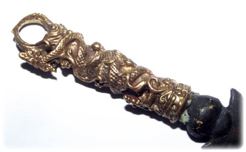 The Naga knife is a ritual instrument, which can be used for bucha purposes, and for bestowing blessings and imbuing sacred items with magic powers. Paya Nak is a guardian of treasures, and as such it is the ruler over wealth and prosperity. Hence, the faithful worshipper performing bucha to the Naga deity will be blessed with abundant wealth and lucky fortunes.
