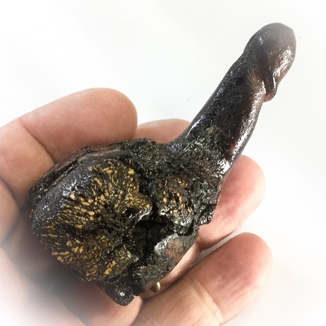 The Palad Khik are formed from the natural shape and form of the Sacred Ga Fak Rak wood, which has required only the minimum of caring to enhance the already phallic shaped piece of Sacred wood. Empowered with the Wicha of Luang Por Prohm, Master of the temple of Luang Por Kong; Wat Ban Suan, in Pattalung.