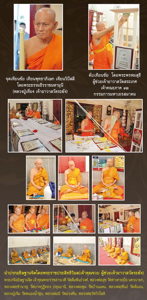 Final Puttapisek was at Wat Rakang Kositaram on the 9th february 2555 BE, along with the 'Pra Somdej Roey Pong Gao' Amulets officially released, which were very attractive Powder Somdejs with powders and gem fragments from previous editions sprinkled over them.