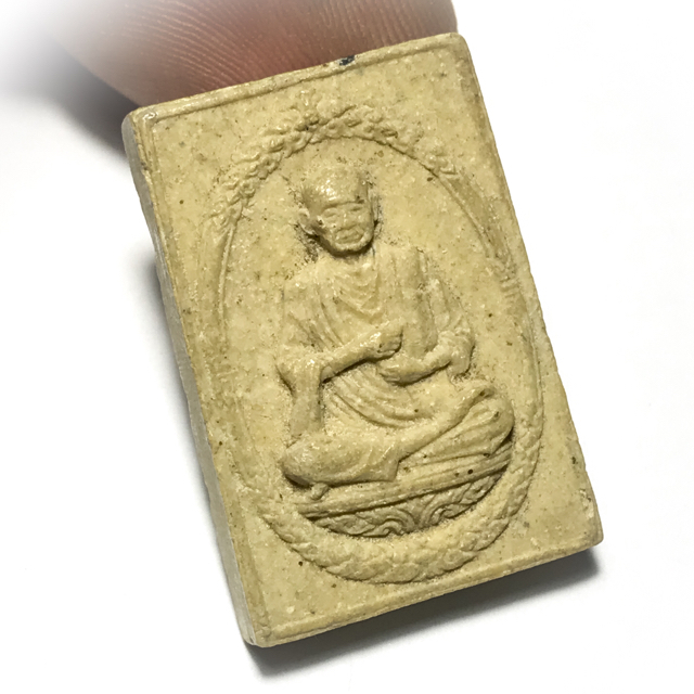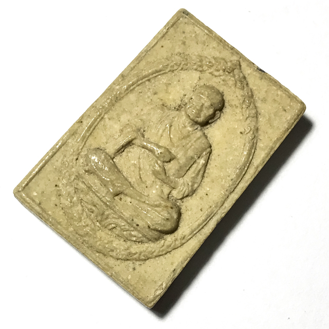 This incredibly detailed sacred powder image of the Great Guru Master Somdej Pra Puttajarn (Dto) Prohmrangsri is in pristine condition and an extremely rare item in the present day, made from Sacred Powders of Wat rakang, which always contain a certain amount of the original Pra Somdej Wat rakang amulets of Somdej Dto, as well as ground up amulets of previous editions, Gesorn Pollens, and the 5 Yantra Powders of Bpathamang, Ittijae, Puttakun, Trinisinghae, and Maharaj powders.
