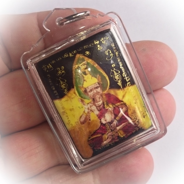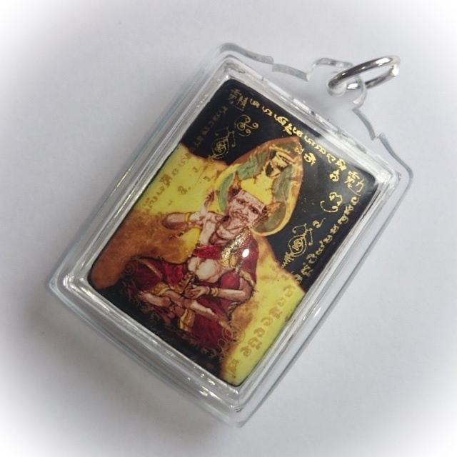 Medium Size (Pim Klang) Size masterpiece Version Amulet Phu Lersi Dta Fai Sak Yant Hermit God - with 3 Takrut Maha Sanaeh Gariang Kor Ma from Luang Phu Bpan of Wat Na Dee. The Takrut were taken from 4 Khun Phaen Gariang Kor Ma amulets, which were broken down for making sacred powders, and the Takrut were removed for re-use in these lockets).