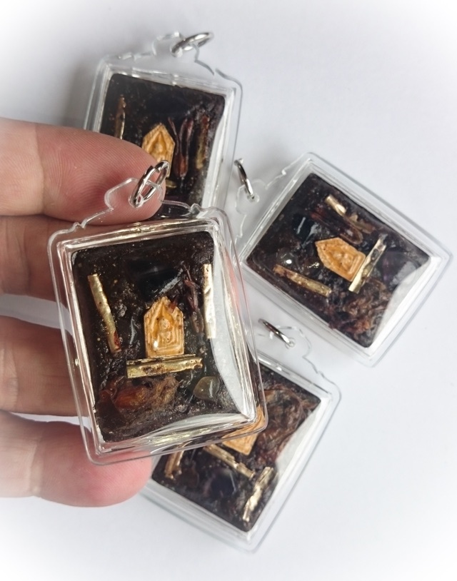 In addition, the rear face has inserts of Ga Hlong and Ga Fak Rak Flowers, and Ploi Sek Gems. Only four of these lockets were made by Ajarn Spencer in his Private Ashram at Asrom Por Taw Guwen in in this, Ajarn Spencer's First Official Edition of no holds barred lockets. Three lockets were placed available, with the fourth locket being kept by Ajarn Spencer to give to his own Son.