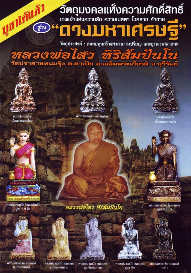 We have a vast selection of over 4000 different kinds of Sacred Amulets and Bucha Items, including Buddha Image, Loi Ongk statuettes, Buddhist Monk Coin Amulets, Takrut Charms, Nam Man Prai Oils, Mai Kroo Wands, Mitmor Ritual Knife, Lek Lai Kaya Siddhi Elemental Substance, Kumarn Tong, Gambling Amulets, Mae Nang Prai, Muan Sarn Sacred Powder Amulets, Palad Khik, Animist Charms, Necromantic Amulets, Buddhist, Animist, Brahman and Necromantic Amulets.