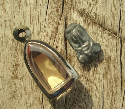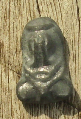 It is a miniature Pra Pid Ta (about the size of a little finger nail) and is made from ancient Lead , which was used from LP Iam, who used the lead to make his famous Pra Pid Ta amulets. The remaining lead was given to LP To at Wat pradoo Chimplee, for the making of his Pra Pid Ta amulets later. The amulets were actually made by LP Iam in 2512 and buried in the Gru. They were then removed from the Gru in 2515 and Hlwong Phu To was asked to preside over the Puttapisek ceremony. Wat Koh Non was once the place of residence of Hlwong Hlwong Phu Iam.Each of these Pid Ta amulets is different, no two being the same. Hlwong Phub To used to give the amulets to devotees and tell them "Pra nee khong dee na - geb wai na!" ('this is a good amulet - keep it with you"). Many different Master Monks were present at the Puttapisek blessing, including; Hlwong Por Ngern (Wat Suwanno), Hlwong Phu To (Wat Pradoo Chimplee, Hlwong Por Dte Kong Tong (famous Gumarn Tong maker of Wat Sam Ngam), LP Muy, LP Nor,and many many other famous masters of the time. This is definitely a genuine authentic thirty eight year old amulet which is attractive for LP To devotees as well as for followers of Pra Pid Ta amulets