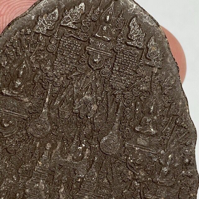 This amulet is exceptionally important as it is one of the earliest sacred objects created by Ajarn Mom and is the origin of the term "Maha Yant" – a signature element of his creations. The amulet is a replica of a sacred Buddha image: Phra Phutthanimit Vichit Mar Molisee Sarrpetch Borom Trailocanart at Wat Na Phra Meru in Phra Nakhon Si Ayutthaya province. This is a beautiful Buddha image in the seated posture with royal attire, symbolizing victory over the three worlds of Mara (evil).