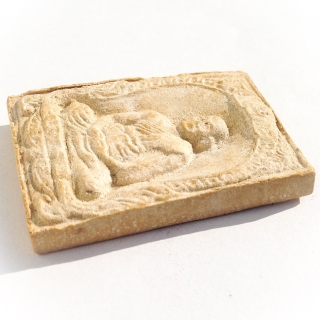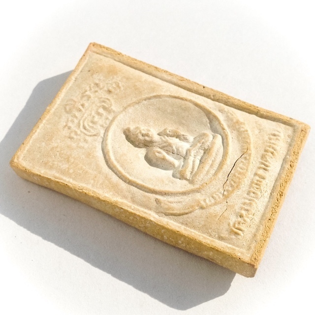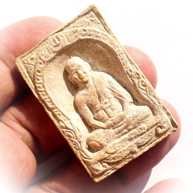 Pra Pong Roop Muean (Sacred Powder Image of Guru Monk Luang Por Yaem) - Hlang Kumarn Tong (with Kumarn Tong on rear face). Sacred Votive Tablet for Devotees of Luang Por Yaem, and the Kumarn Tong of Wat Sam Ngam.