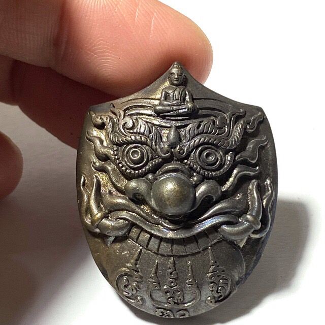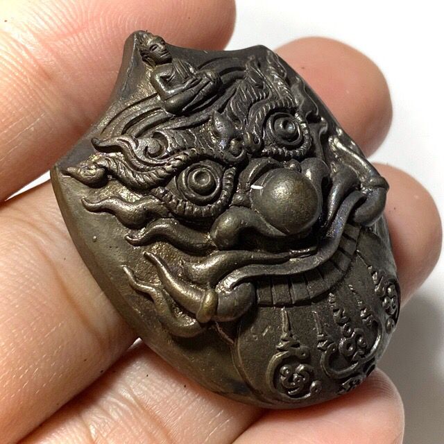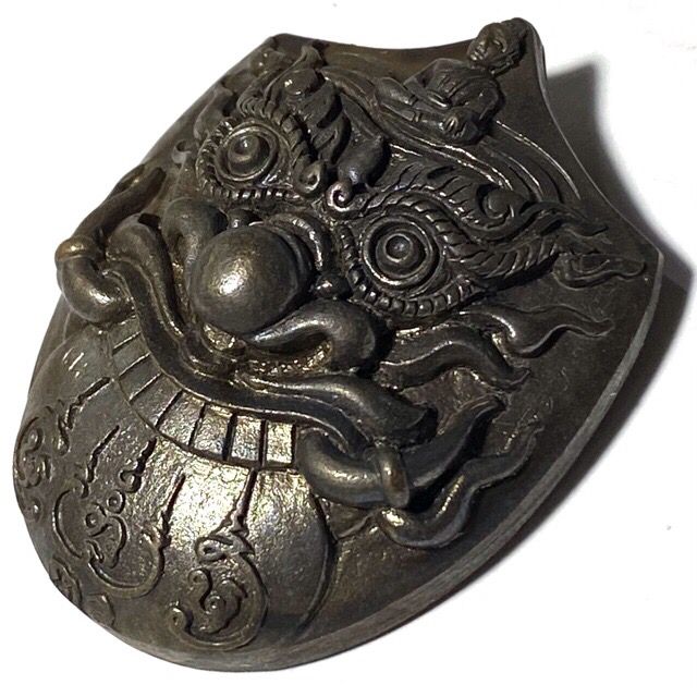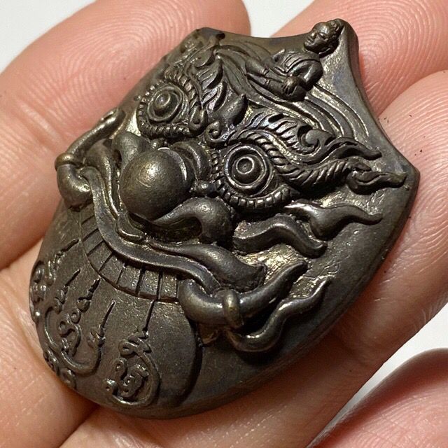 Only 999 amulets were made in all in this particular Sacred Metal. The Design of the Pra Rahu Eclipse God is very finely decorated with Lai Thai style markings and