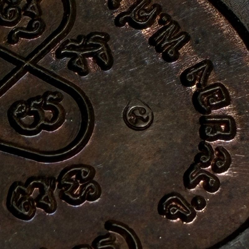 Detailed analysis of the yantra inscriptions on the reverse of this coin identifies them as a specific maha lap formula inherited from Luang Por Tim, with the Na Maha Setthi positioned in balanced configuration. Authentication of the nava loha version requires close attention to the crispness of the ornamental lines and lettering. The dies were produced using high resolution computerized engraving, making traditional casting forgery ineffective. The edge cuts of the coins also exhibit distinct characteristics unique to this issue and are difficult to replicate convincingly.
