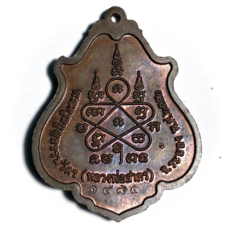 The official registry of this amulet issue was clearly defined by metal type and form to support systematic collection and prevent forgery. The most popular formats were the standard round coin and the smaller oval form commonly referred to as melon seed or tamarind leaf style. Gold versions were produced strictly to order, not exceeding ninety nine pieces. Silver versions were limited to nine hundred ninety nine pieces. The nava loha version was produced in exactly two thousand five hundred fifty two pieces, corresponding to the Buddhist Era year of creation. Alpaca alloy versions numbered three thousand pieces. Blackened copper and fire copper versions together totaled approximately ten thousand pieces. In addition, one thousand special committee sets were produced, each bearing unique stamps and serial numbers, often incorporating special metals or enamel work that set them apart visually and ritually.