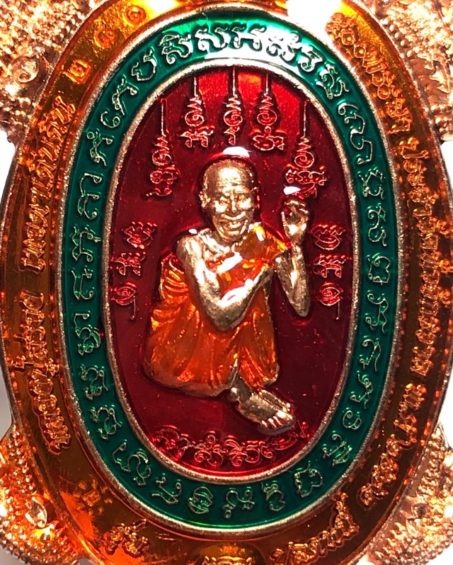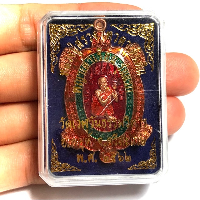 Free shipping worldwide is included. The edition was made in various models of sacred metals, some with combined colors of Ya Rachawadee colored enamel glaze, such as this special model, which in addition has a silver coated Monk Image.