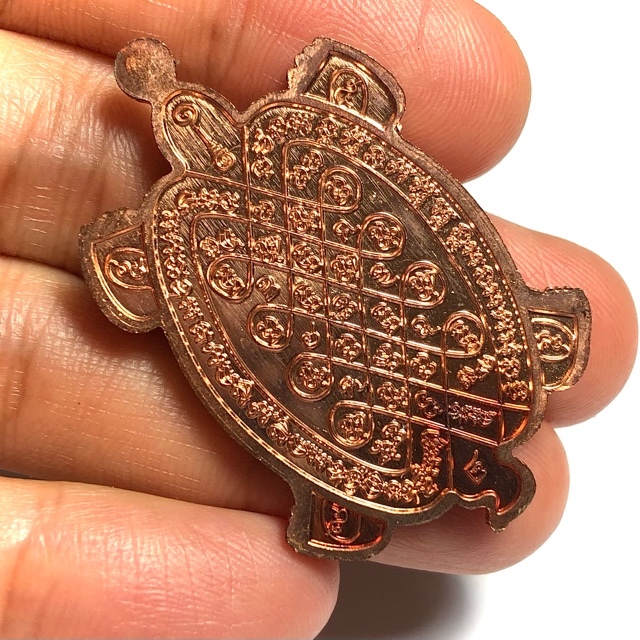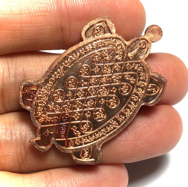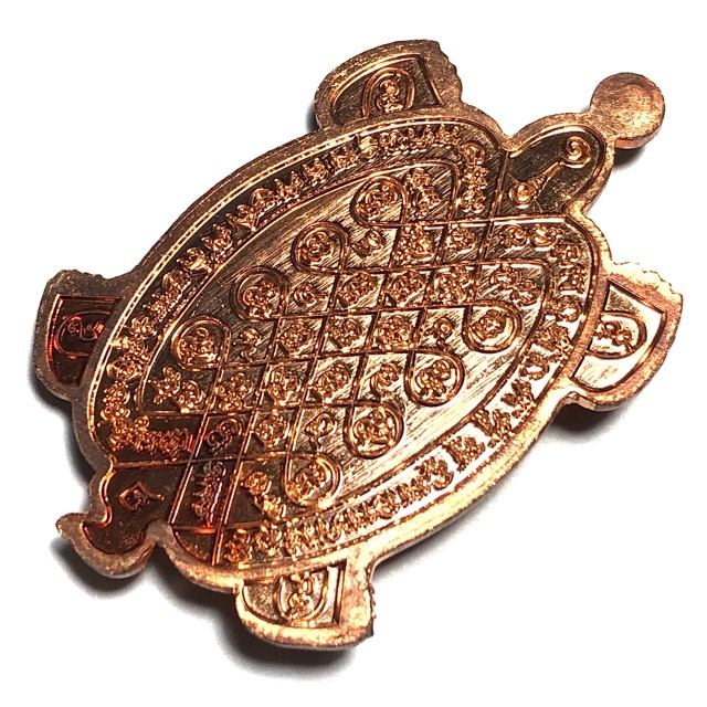 The central diamond pattern of Turtle amulets have 13 Agkhara Sylllables representing the 13 plates of the Turtle's back, and invoke Maha Lap, Klaew Klaad, Serm Duang, and of course the special magical quality of 'Aayu Yern Sukhapap Dee' (generating long life and good health).