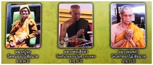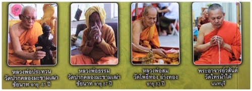 LP Pratuan, Luang Por Dhamma, Luang Por Som, and Pra Ajarn Wasan, Luang Por Suea Dam, of the famous Suea Dam invincible pirate Legends, Luang Por Pra, and the now aged and highly revered Luang Phu Na.