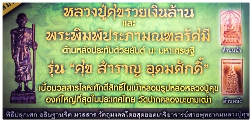 Luang Phu Sukh, is also said to have possessed Wicha to make a Hun Payont, to use for becoming invisible, and teleporting to another place safely. After years of ordination and hard practice on Tudong, Luang Phu Sukh Learned that his Mother was ill, and so he left the forests and went to stay at Wat U-Tong Klong Makham Tao, which was a very ancient Buddhist temple, which lay deep within the mangroves of Klong Makham Tao river.