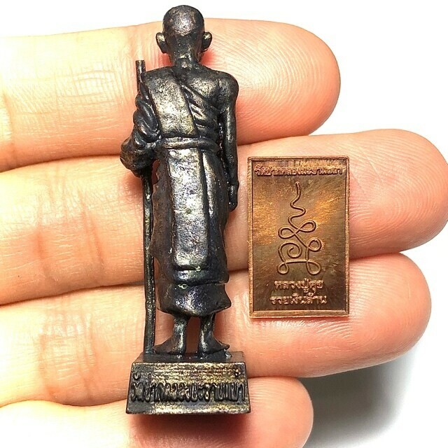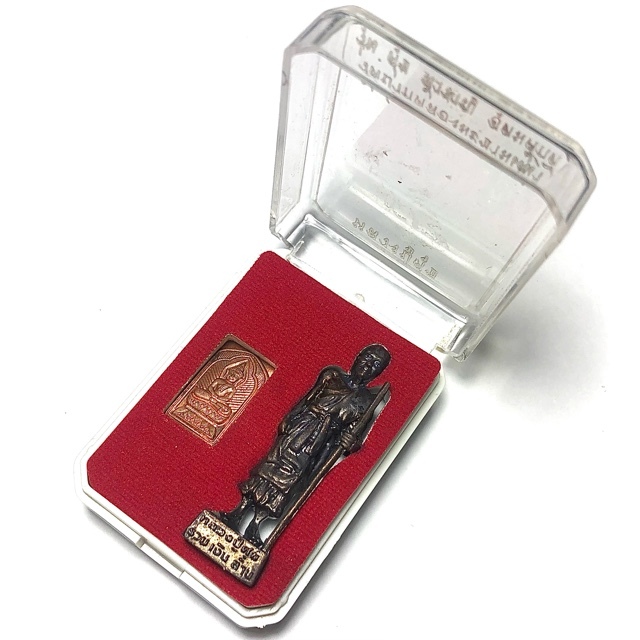 Loi Ongk Statuette of the great Magical Master Monk of Historical Legend, Luang Phu Sukh, of Wat Pak Klong Makham Tao. Accompanied by Rian Pra Pim Prapa Monton Rasamee Hlang Yant Na Maha Sethee. Released in 2556 BE for the Sukh Samran Udom Sak edition, which is the names of Luang Phu Sukh, his Looksit the following abbot Luang Por Samran, and of course, the great Lay Master Mage and prime apprentice of LP Sukh, Grom Luang Chumporn Udom Sak.