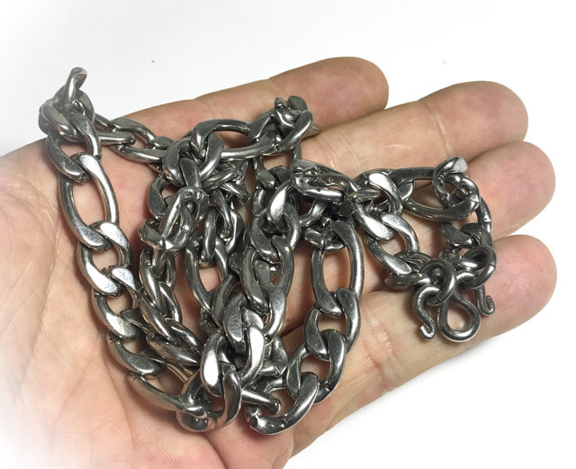 High Quality Stainless Steel Jumbo size neck-chain for amulets, 25 Inches length, with thick flat smooth edged links. The thick gauge links make an extremely potent but elegant and smooth looking neck chain, for those who prefer a very sturdy looking neck chain with one single amulet. Of course it is possible to attach other amulets, but this would not fit with the aesthetics of this particular neck-chain, which is more intended for a single amulet.
