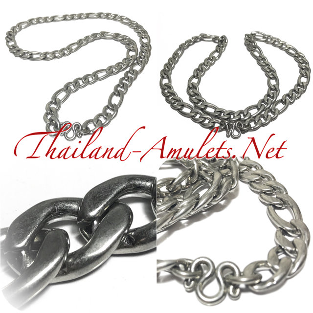 Thai Buddhists have a heirarchy for the placement of amulets, with Buddha Image always taking higher place, or central place to other Deities or Images. The size of chain should fit the person as well as the size of the amulet/s to be worn.