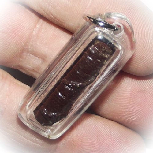 This Takrut is made as a Takrut Tone (leaden scroll) with magical cords and sacred herbal resing coating. It has been empowered and embedded with the Wicha Jing Jok, which is a powerful enchantment spell able to attract lovers and wealth through good business profits.