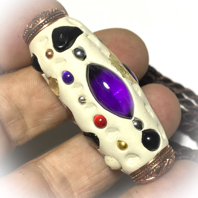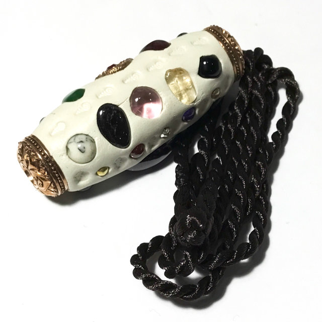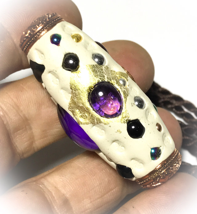 Invoked with Incantations to make the gems and lek lai flow as if through honey and attach themselves into the indentations of the Takrut through their own force of will, without any human intervention except for Incantation. Small indented 'Unalome' spells are pressed into the surface of the Sacred Powder Muan Sarn substance that covers the Takrut.