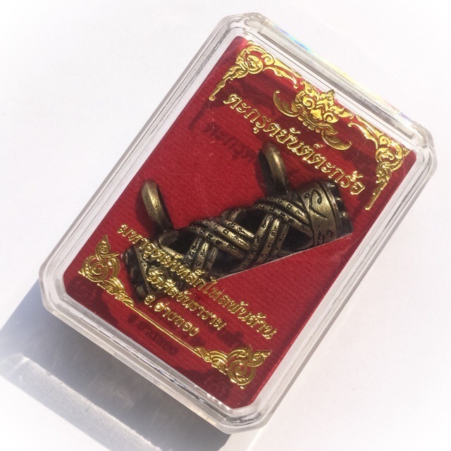 The creation of this Wicha, was assisted with the collaboration of four other temples; Wat Taep Sirintrawas, Wat Pha Moke, Wat Yang, Wat Daeng Pracharat, and Wat Po Gao Dton. Sacred Yantra Foils with Khom Sorcery and Buddhist Blessings were inscribed by a number of Ordained Masters and donated for smelting into the Sacred Chanuan Muan Sarn Metallic Alchemical Alloy to be used for the casting of the Takrut Yant Takror.